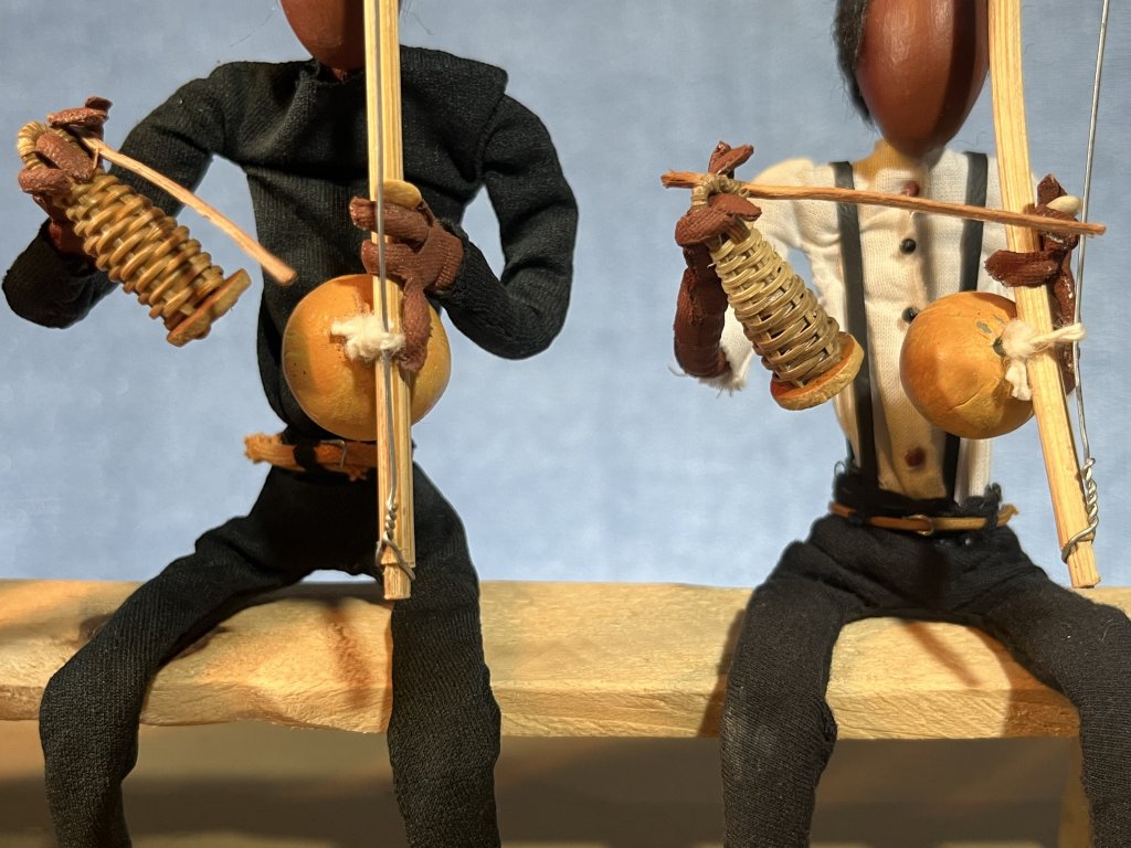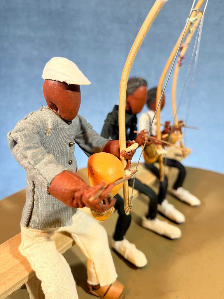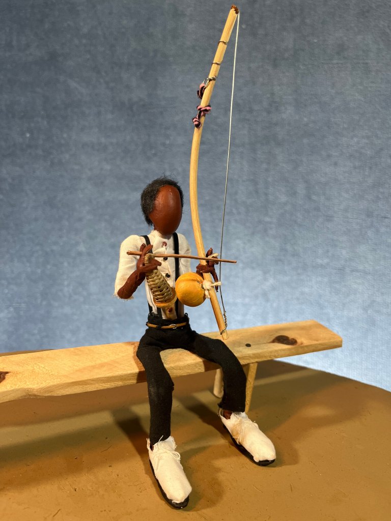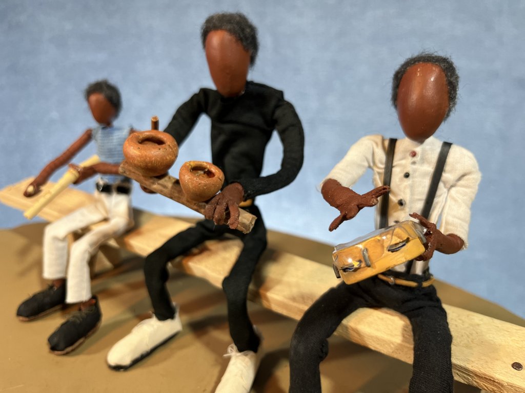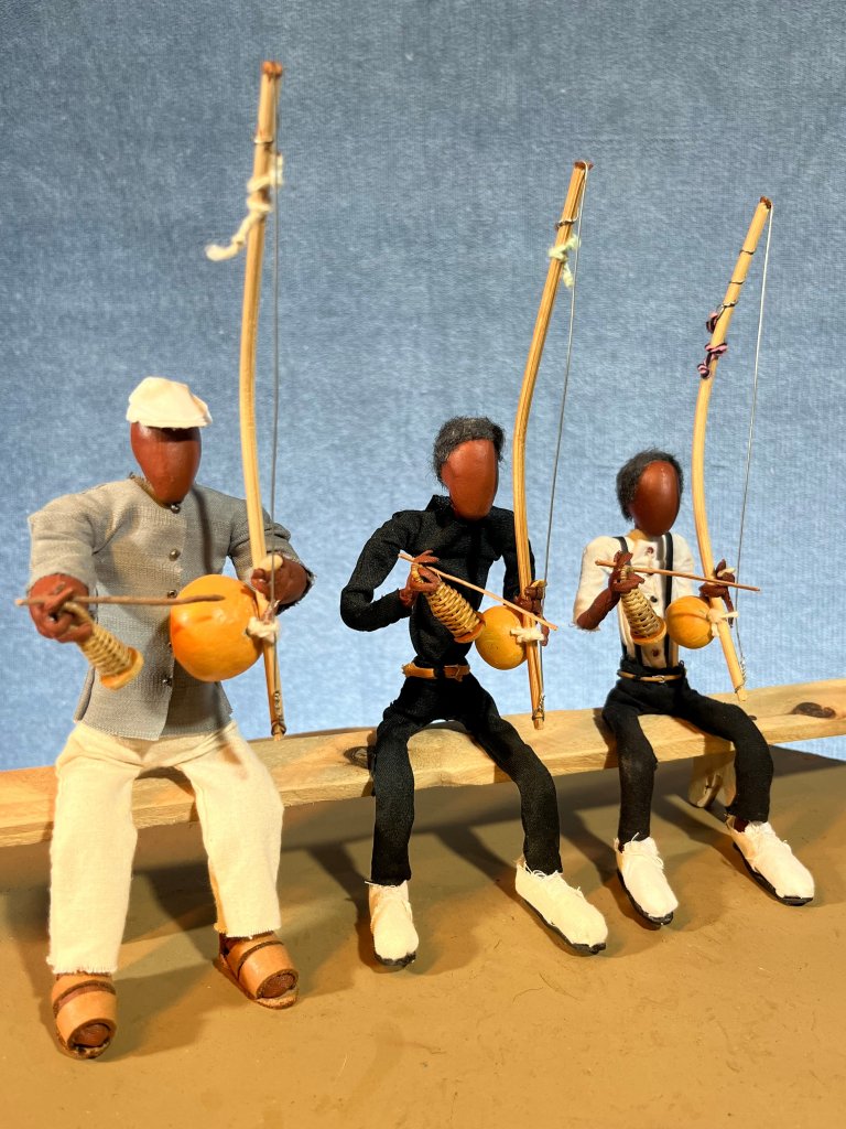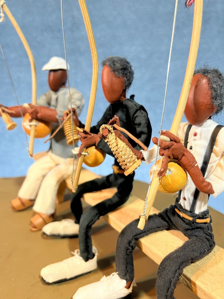 Angola Pequena é um ensaio fotográfico representando a Capoeira Angola a partir de miniaturas de capoeiristas e dos instrumentos musicais. Traçando um paralelo das miniaturas com a própria Capoeira que praticamos, é um estudo, em escala reduzida, de movimentação, história e luthieria. Inspirado na vivência com o ProCAEP e demais espaços da Capoeira Angola, o ensaio tenta traduzir as memórias do corpo em uma alegoria que une os tempos passados, presente e futuro. A pesquisa com as miniaturas começa com o curta “Feito Cobra Pelo Chão”, um stop motion retratando a roda de Capoeira Angola e que já traz parte das peças usadas no ensaio. Angola Pequena propõe um novo desdobramento dos experimentos com miniaturas, dessa vez com imagens estáticas.